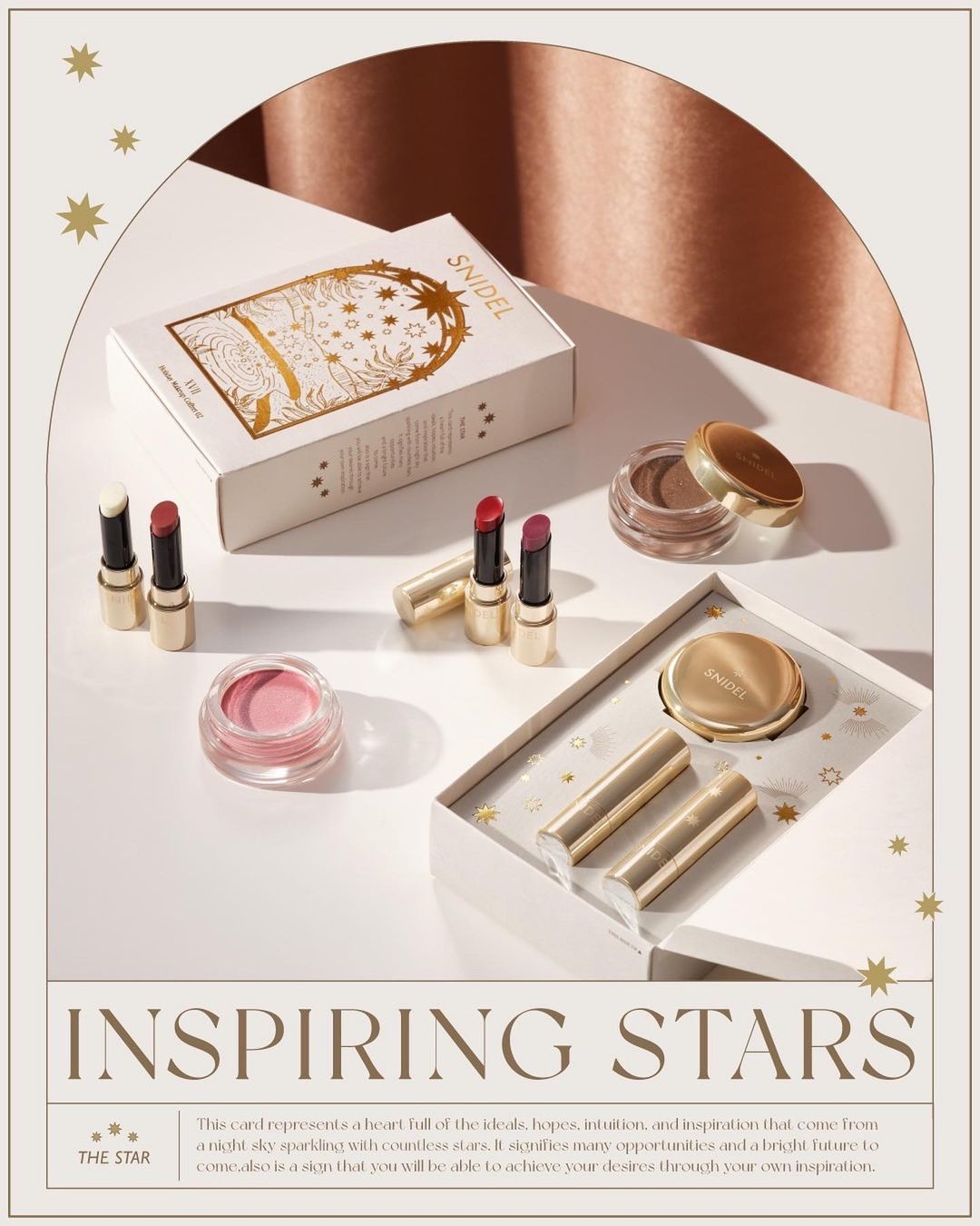 今年初跨足美妝產品的服飾品牌SNIDEL以塔羅牌為意象推出耶誕節彩妝組合,純白與閃耀金打造超搶眼盒裝,為這個冬天帶來全新閃耀彩妝。