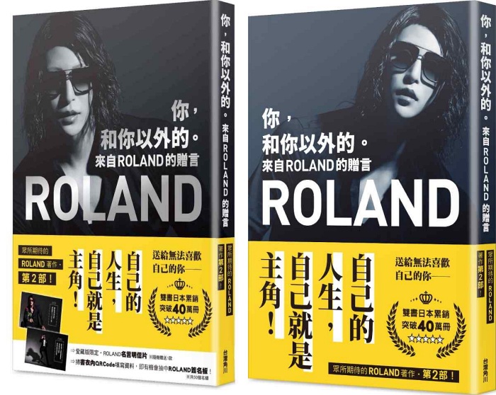 《你,和你以外的。來自ROLAND的贈言》限量愛藏版與一般版,即將於1月17日同步搶先預購。如果你還在徬徨,就跟隨ROLAND的話語吧!本書將會引領讀者重新走過一遍「現代公關界的帝王」ROLAND轉型成經營者的心路歷程,讓ROLAND的話語成為支持你的力量。