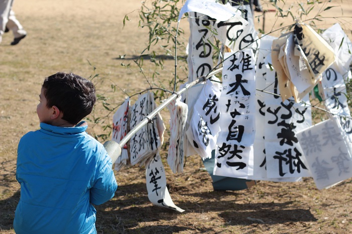 這天還有一個活動便是『新年書法(書き初め)』,一般作法是使用一月一日汲取的水,面對惠方(諸事大吉的方位)以筆墨寫下詩歌。