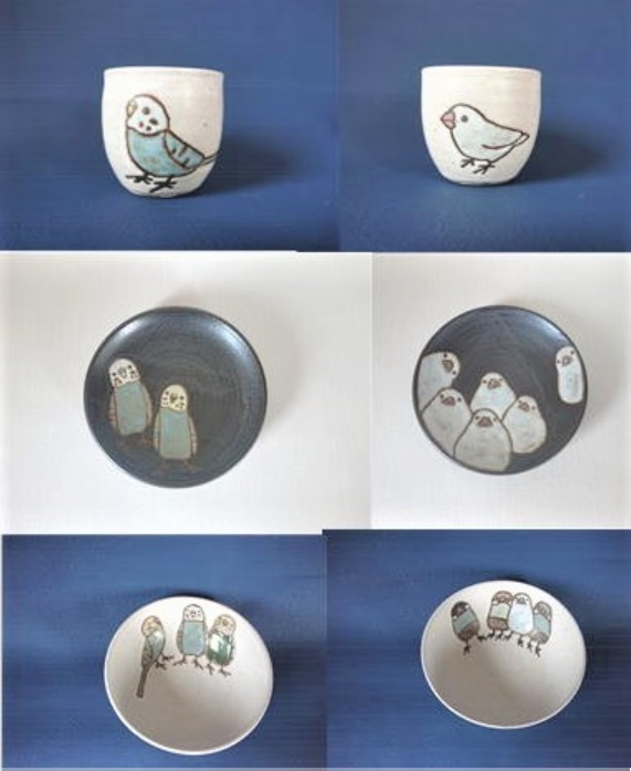 「陶房吞器」放在每間生活雜貨選物店的作品也都不一樣,像是這系列是放在東京「古今東西雑貨店 イリアス」中的文鳥陶器,有杯子、碗盤、筷架等等,每一款都擁有不同的造型與設計。
