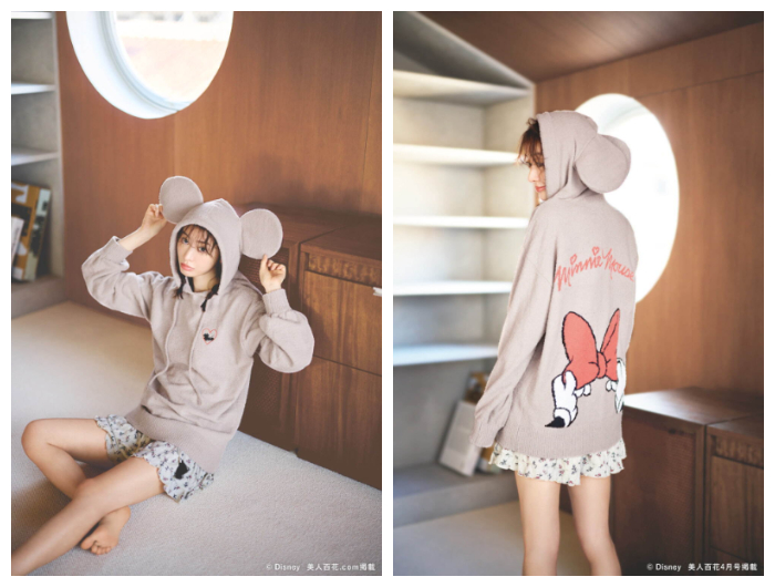 具有米老鼠經典像徵大耳朵的帽T,正面看馬上就可以聯想到disney的米奇與米妮,而轉到背面一看見那經典的大蝴蝶結,絕對就是令人喜愛的可愛米妮啦!寬大的長袖帽T最適合在家中活動時穿著,背面可愛的樣子讓你瞬間成為背影殺手。