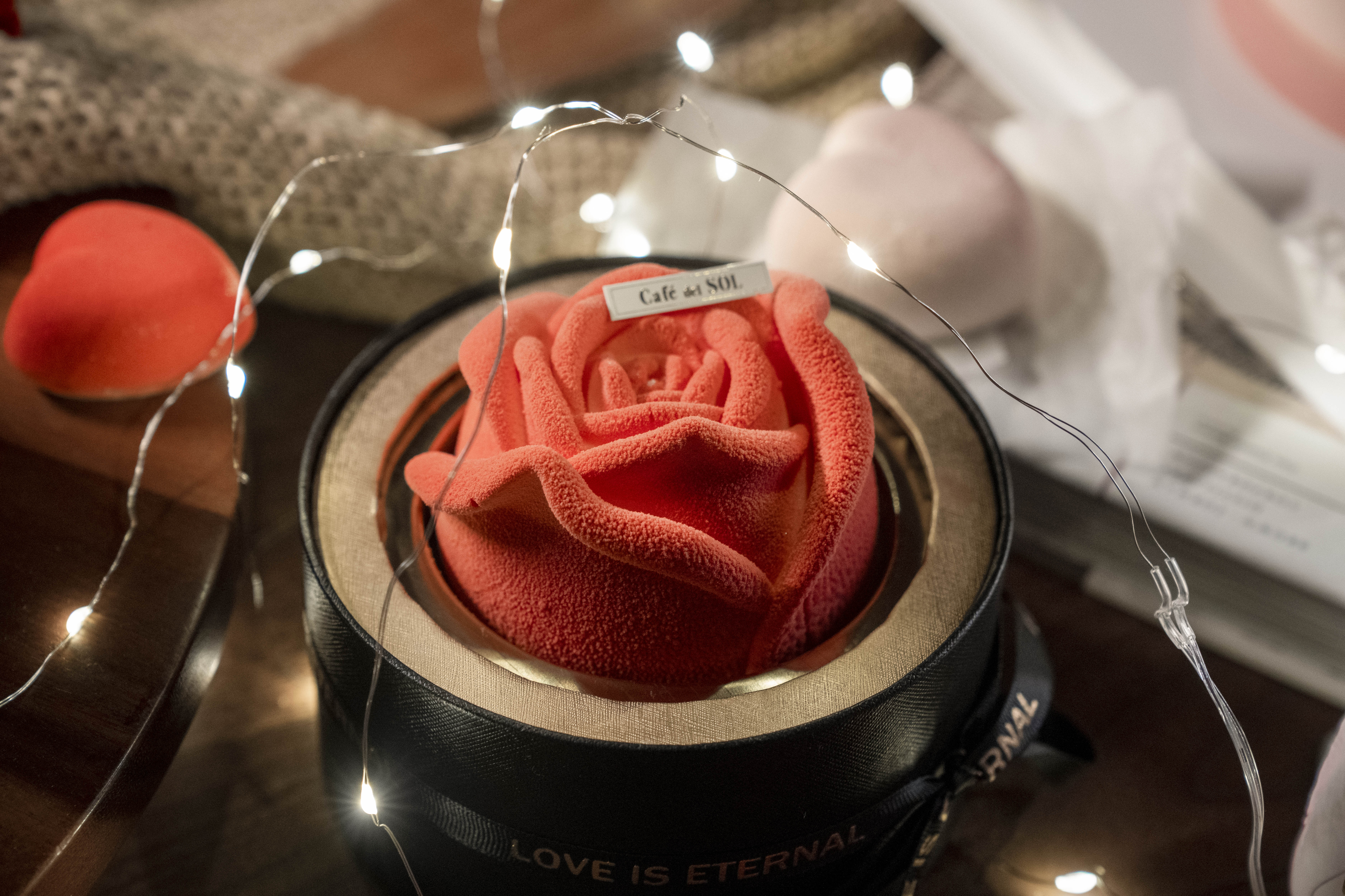 限量僅20顆的無盡的愛絕對是此次母親節的超人氣選擇。以仿真的玫瑰花為外型,不僅造型繁複,需耗時製作,內餡糕體更是層次豐富。玫瑰花蛋糕總共有三層,其中以日式海綿蛋糕為主體,分別搭配玫瑰慕斯、葡萄柚百香果奶醬和法式白巧克力脆底。玫瑰慕斯更是使用法國進口的玫瑰水製作,優雅又美味,保證能擄獲媽媽們的芳心。