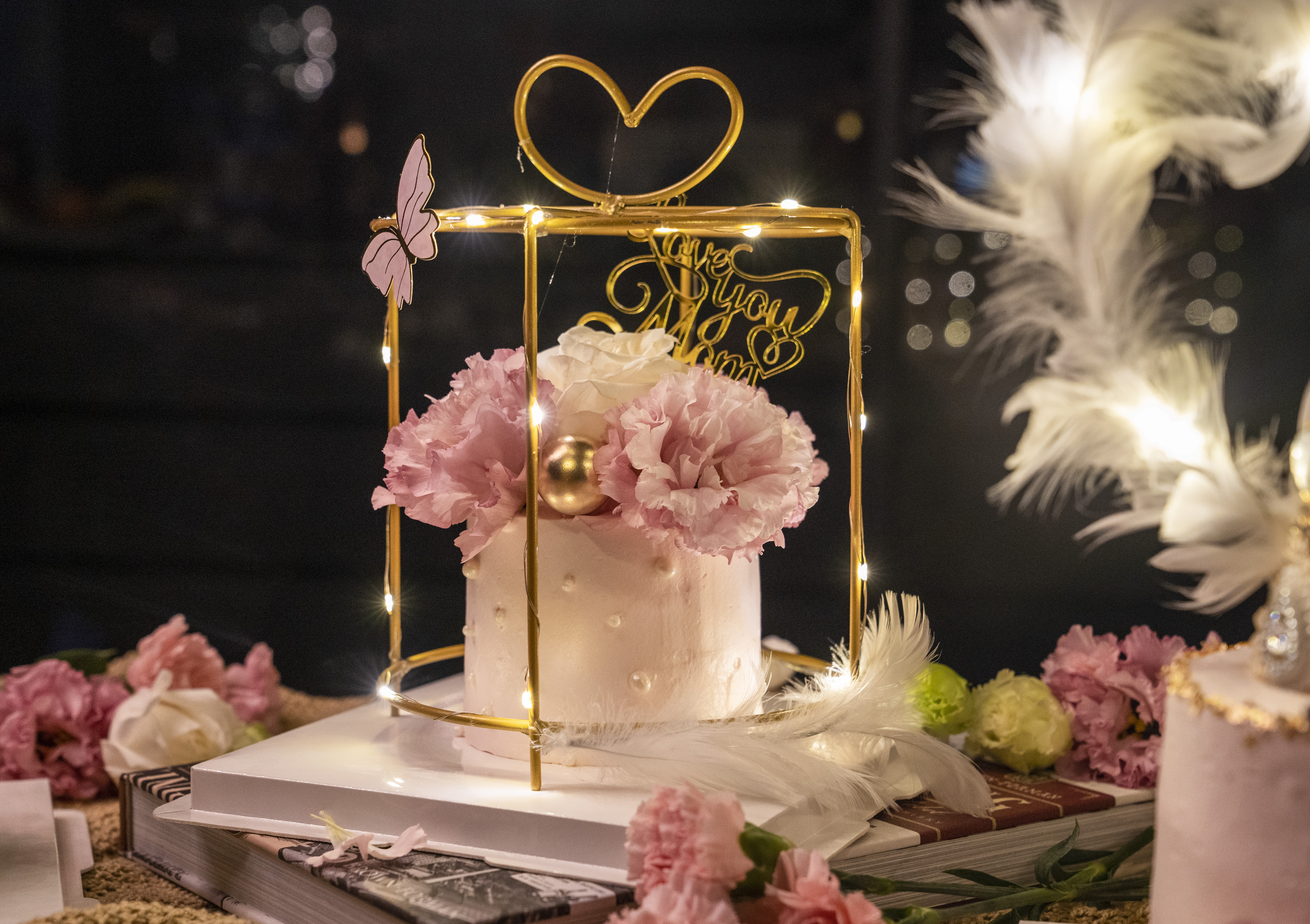 心意滿滿的大小愛心的造型蛋糕,最適合用來表達對媽媽真切的愛,沒有媽媽就沒有我的象徵!大愛心的外層為玫瑰慕斯,內層是日式海綿蛋糕搭配葡萄柚百香奶醬,底部則是白巧克力脆底,層次相當豐富!從外觀到口味有許多的細節值得期待,小愛心是以玫瑰慕斯及葡萄柚奶醬組成,小巧可愛且精緻。