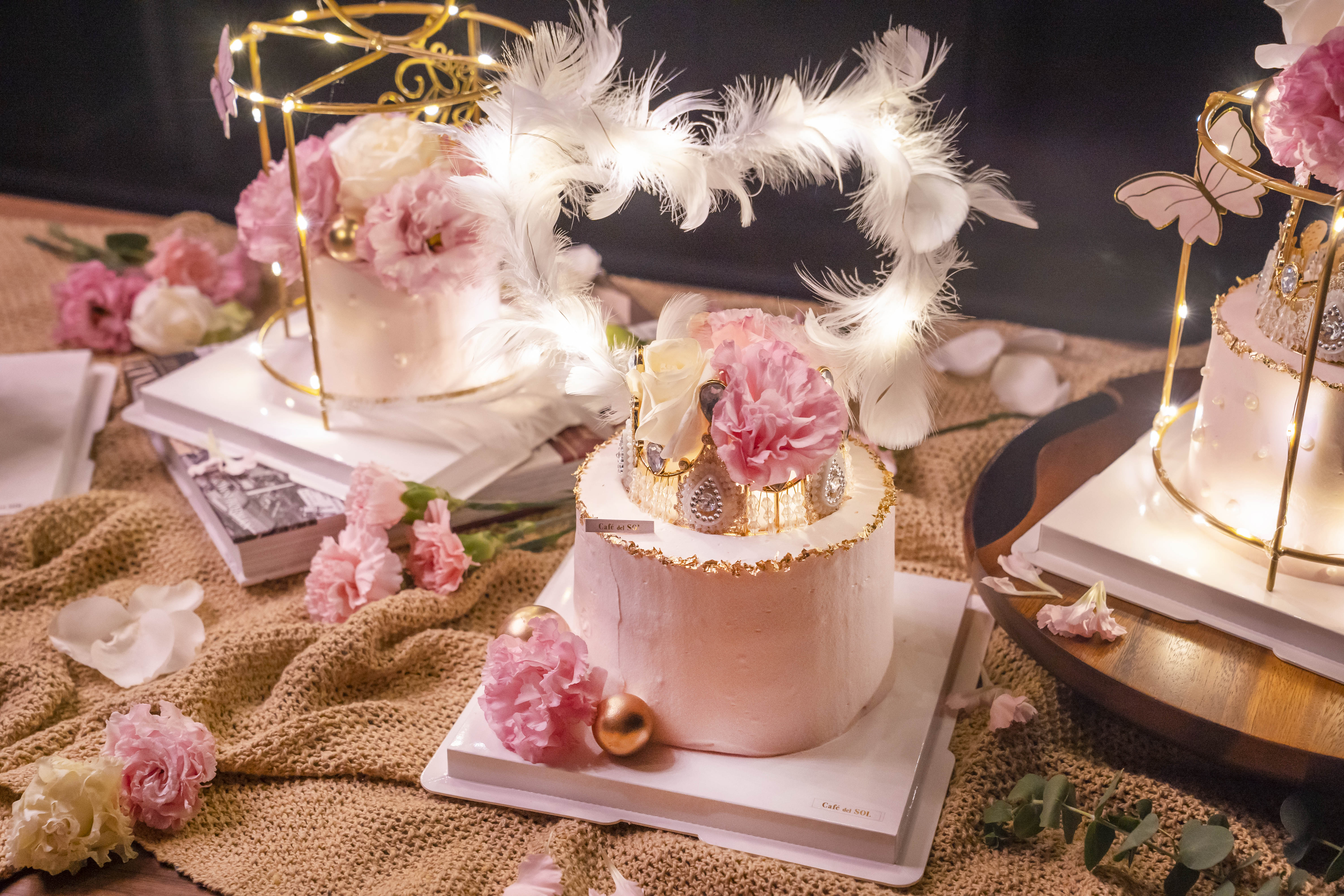 天使之心與永恆的愛一樣為伯爵戚風鮮奶油蛋糕,但是尺寸較大一些,適合四到六人分食。外型部分則是以康乃馨搭配皇冠與羽毛愛心,精緻夢幻、浪漫唯美!金黃色的華麗皇冠就是要獻給女王般的媽咪,讓他在母親節這天擁有女王般的待遇。