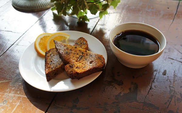 飄著肉桂香的胡蘿蔔蛋糕與咖啡。