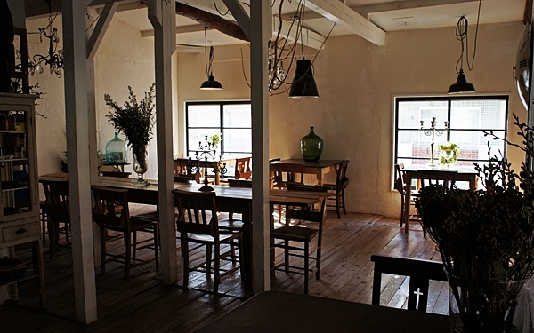 2樓的咖啡廳排列著歐洲的古董長桌,教會椅、大玻璃瓶,連乾燥花看起來都像西洋繪畫中的風景,一切都令人愛不釋手。