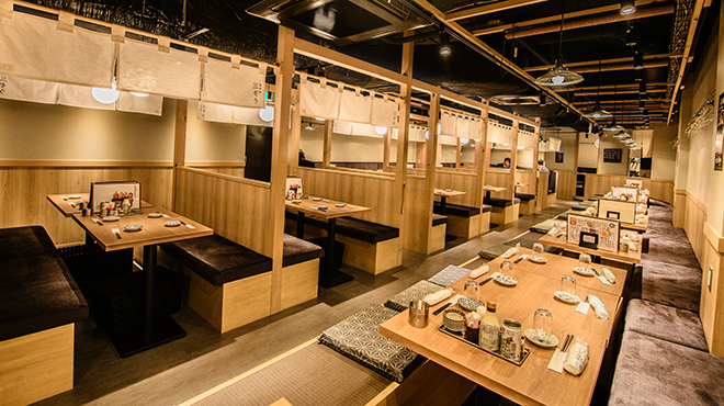 有受歡迎的箱型座位,從少數人到30人的團體都容納得下。店內是充滿昭和初期的復古氛圍是充滿活力的居酒屋。精心製作串燒,將美味引向極限!將串燒刷上特製調料醬中醃製一夜使其熟化,使味道達到極致。