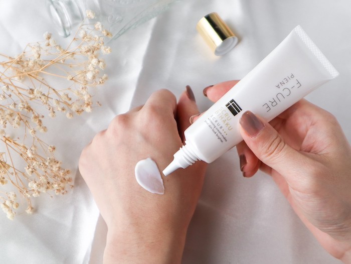 「FC金蓋淡斑筆」的外觀特徵就是金蓋,簡約白身瓶帶著一些小奢華感的點綴,不算特別搶眼卻別有特色,擠開來看到白色乳霜質地以及特殊維他命微粒,看起來偏厚,但實際上卻能輕鬆推開,迅速就能感覺到滋潤感!