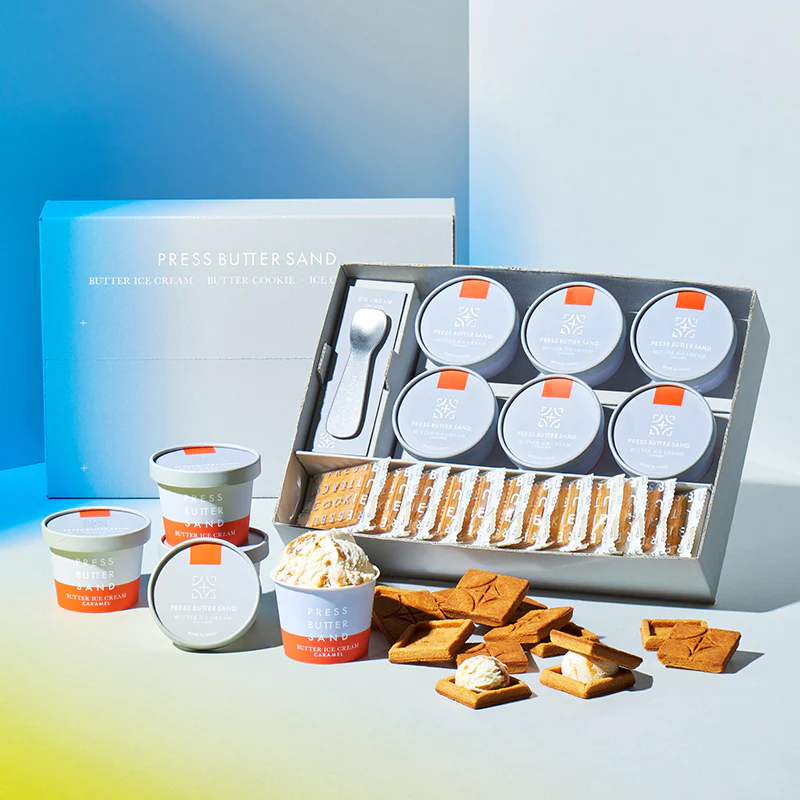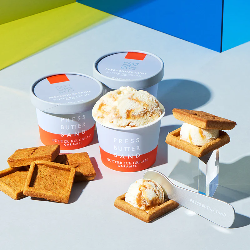 夏天就是要吃冰!PRESS BUTTER SAND的酥脆餅乾這回夾的不是焦糖奶油餡,而是超濃郁焦糖冰淇淋,可說是將定番原味給強力升級,成為今夏最特別的美味伴手禮。禮盒中附贈專用湯匙,一杯焦糖冰淇淋搭配兩組酥脆餅乾,想夾多少餡由自己決定。