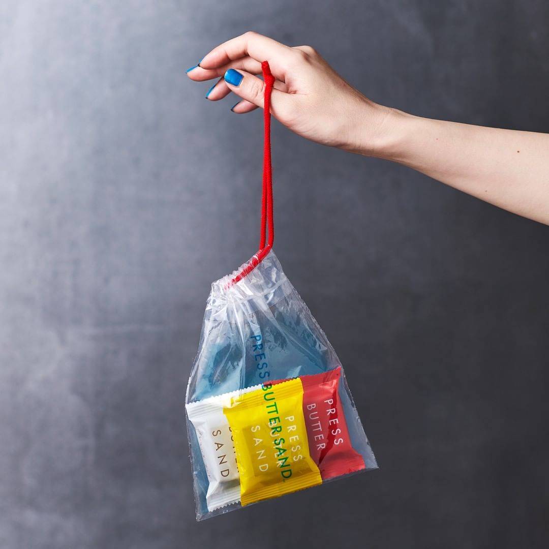 以夏日祭典必備的活動「撈金魚」為概念,PRESS BUTTER SAND推出透明束口袋包裝的禮袋組合,內容包含季節限定新口味以及定番原味,精緻的三入份量讓收禮的一方也能輕鬆享用無負擔,是今夏見面禮、伴手禮首選。