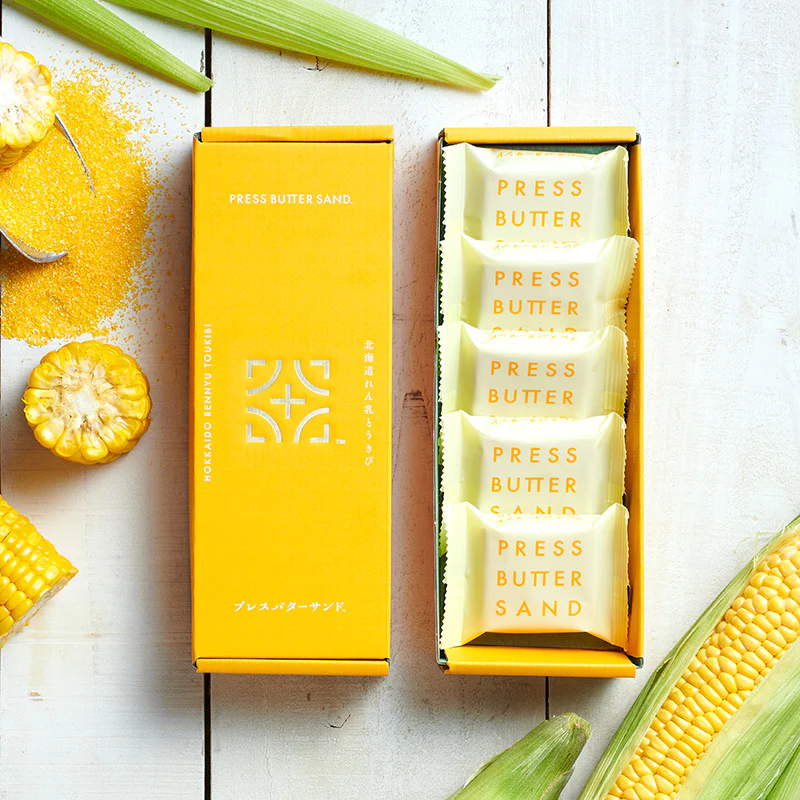 PRESS BUTTER SAND的季節限定口味第二彈則是嚴選北海道在地玉米及煉乳,添加在酥脆餅乾、奶油餡以及焦糖之中,獨特玉米香氣與濃郁滑順的內餡讓人大感驚艷,每一口都能吃到來自北海道孕育出的大自然風味,讓你感受到夏天去北海道旅行的心情。