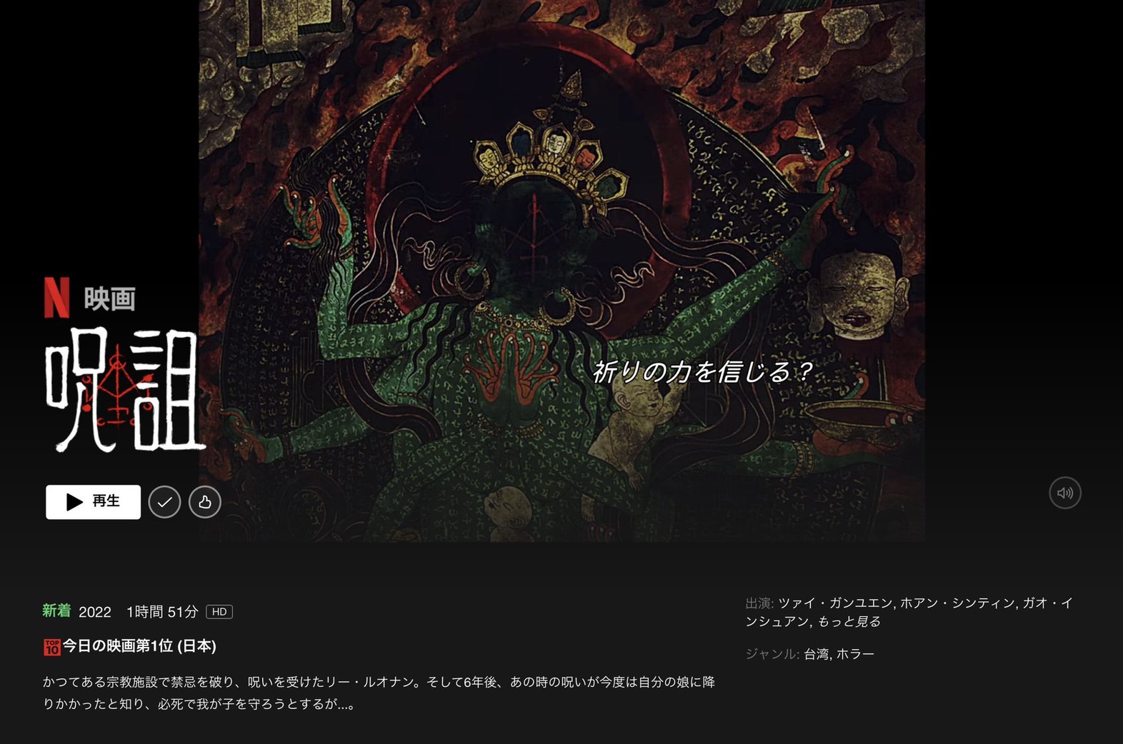 ネトフリで今日から配信されてる『呪詛』(原題 咒-incantation-)、観ました。
