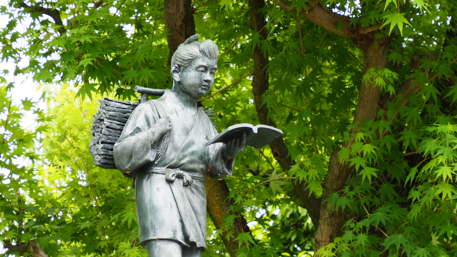 二宮金次郎(或叫二宮尊德)是江戶時代的思想家,相當勤奮且重振原本家道中落的家族,據說他非常喜歡看書,所以多以揹著柴薪邊看書的塑像放在校園,以激勵學生向學;由於近年手機興起,為避免學生邊走邊使用手機,許多學校便將二宮金次郎像撤掉了。