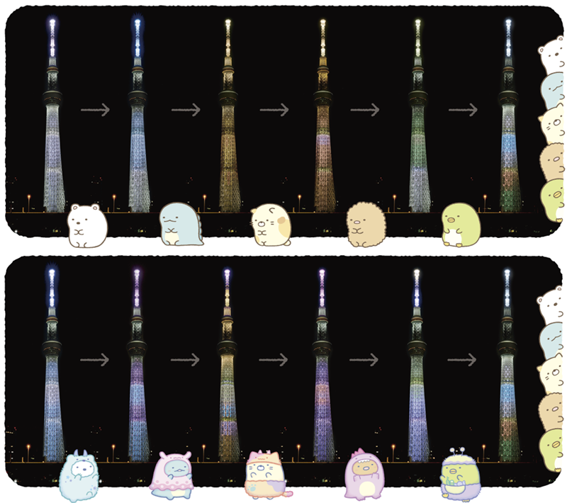 東京晴空塔每周六晚上都會為每個角色亮燈,並依照角色帶來不同的燈光效果。