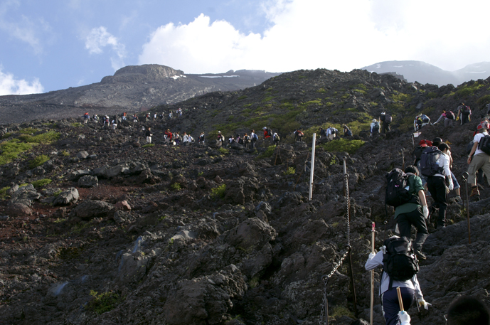 距離最長、海拔落差最大的御殿場線,是所有路線中最困難的,建議要安排在山屋中過夜,而且由於要一直到七合目(合目:概分登山路線路程的標示單位)後才有山屋,一定要準備好充足的水和糧食,務必做好萬全準備!這條路線相比其他三條人數非常的少,若本身是有豐富經驗的好手,很適合選擇此路線來場靜謐的登山之旅!