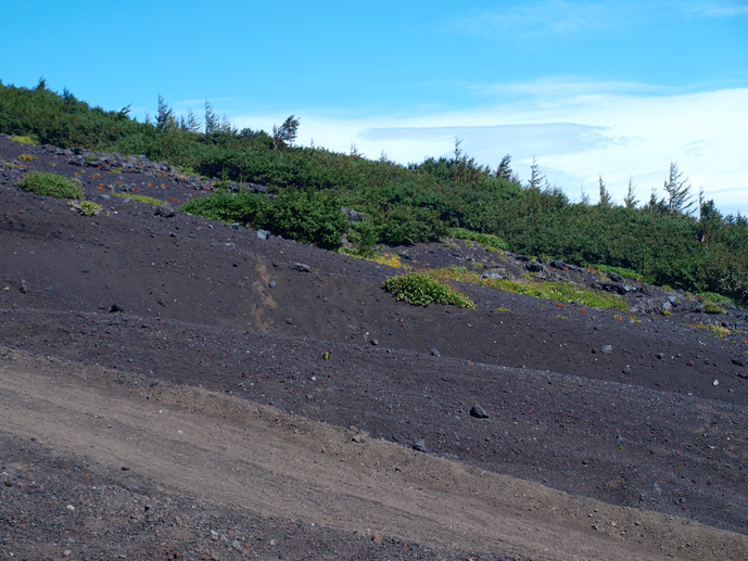 須走線最大的特色就是中途擁有豐富的自然景觀,原始森林為登山者們提供了足夠的遮蔽,即使是豔陽高照的日子走起來也相對舒適,還有另一個特色是此路線下山過程有一大段筆直的沙坡,可以體驗「沙滑」的樂趣,雖然聽起來很有趣但還是要提醒各位小心膝蓋呀!此路線比較適合有經驗的登山者噢!