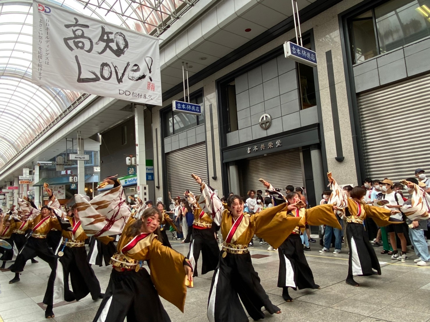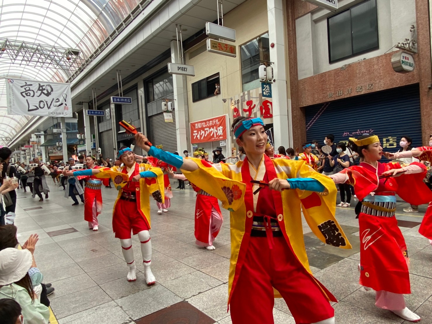 演舞會場的規模從往年一貫的16會場縮小為以高知城前追手筋為首、帶屋町、高知城、高知車站前、播磨屋橋等共計12處舉辦。主要演舞場之一的追手筋會場,為防止周邊人潮聚集,將單日上下午區分為四場次,將追手筋棧敷席全面改為付費指定席,並有請參加者需於7天前開始實施自我健康管理,讓民眾可以安心參加。各演舞場入口前設置檢溫站,通過體溫檢測即可獲得手環入場。