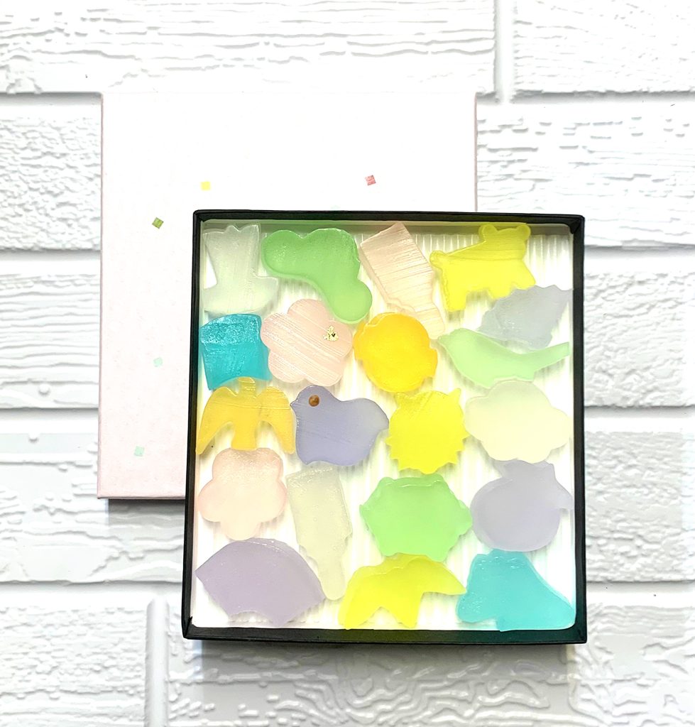 擁有190年以上歷史的老店「石川屋本舖」,販售各種傳統和菓子,其中店家最推薦的便是「彈珠糖」。點心的日文名字「かいちん」是金澤方言中的「おはじき(打彈珠)」的意思,其外表繽紛且有些透明,就像漂亮的彈珠。邊緣銳利,口感卻是意外的柔軟,很好入口。隨季節變化還會有不同造型,也是很適合重複送的可愛伴手禮。