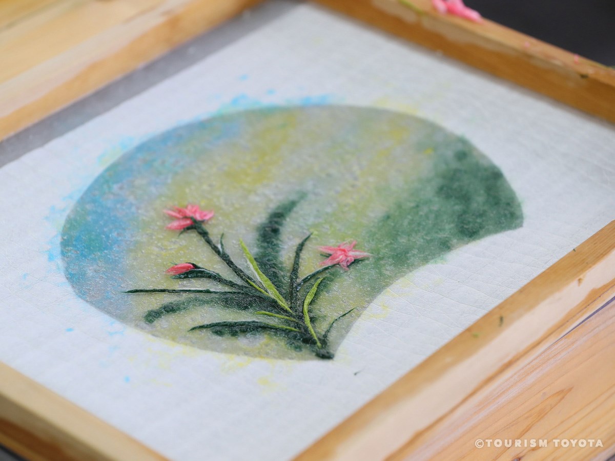 豐田市的小原地區自室町時代以來就是著名的「紙的故鄉」,距離「川見四季櫻之里」搭乘巴士(上仁木-和紙之鄉)約4分鐘抵達的「小原和紙之鄉」亦是四季櫻祭典的會場之一。在「小原和紙之鄉」能體驗手漉和紙的傳統工藝,在和紙老師的教導下,能輕鬆地親手製作專屬於自己的和紙明信片或團扇,留下獨一無二的紀念。等待和紙作品乾燥的同時,可以到一旁的和紙體驗館欣賞來自日本各地的和紙標本及充滿個性的紙工藝作品,感受和紙的魅力。