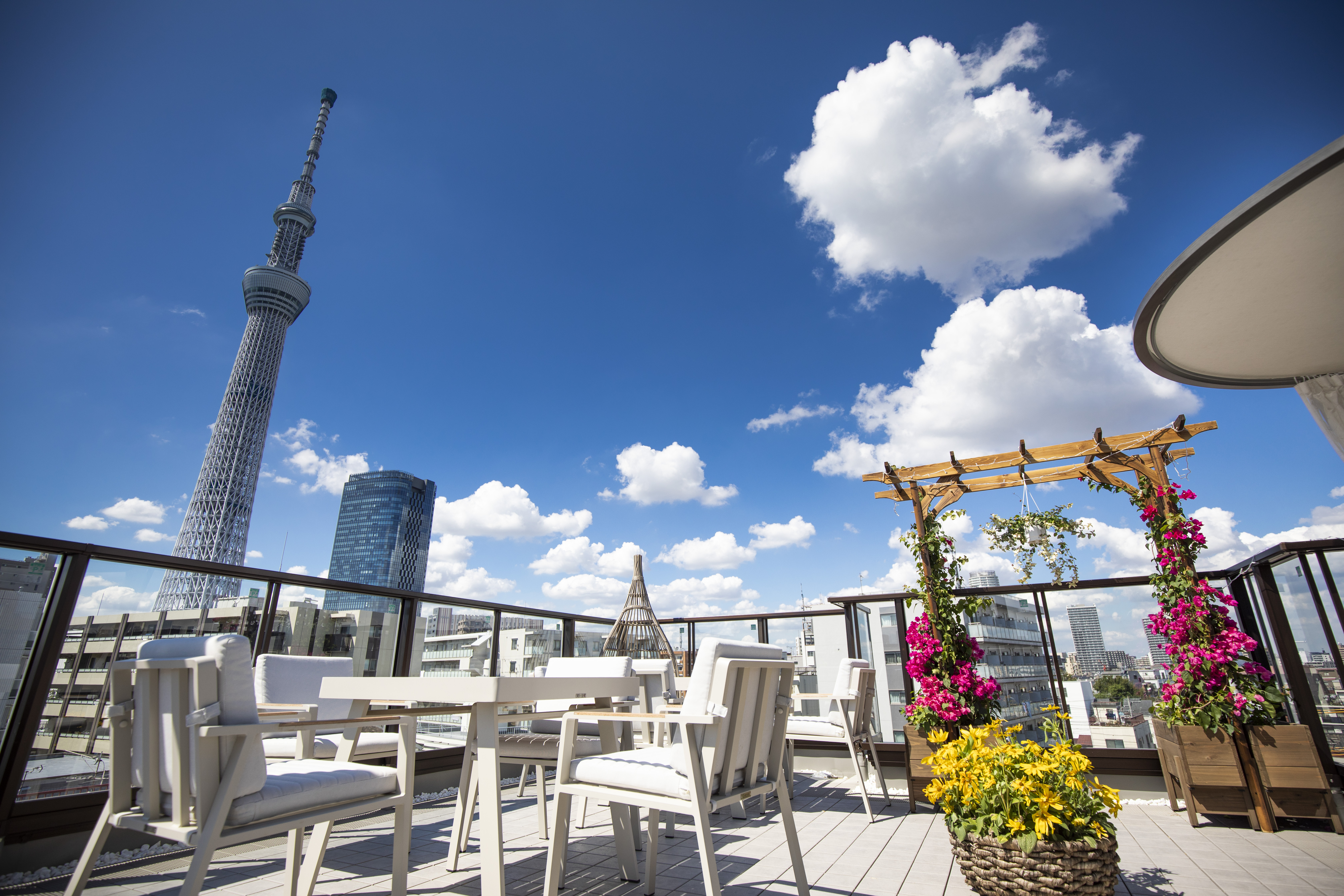 飯店樓頂的空中花園露台,堪稱欣賞東京晴空塔的最佳地點,可以在此以東京晴空塔為背景拍攝下絕美的旅遊紀念照,也可以在此與旅伴悠閒聊天、飲酒作樂。