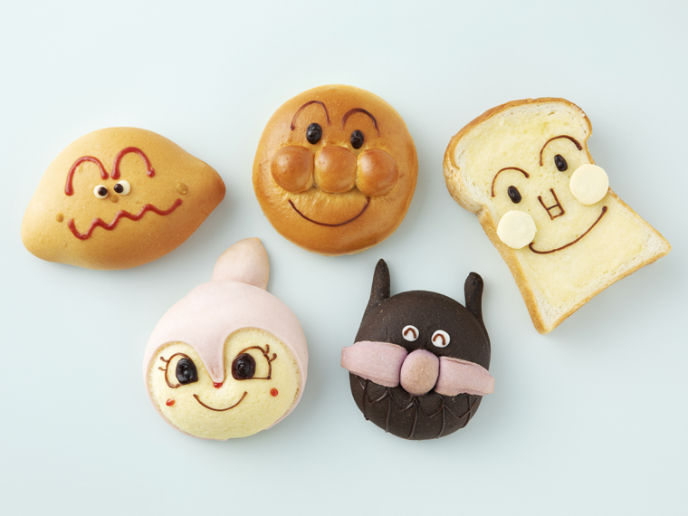 店內販售的是主要角色的麵包,有麵包超人(紅豆口味)、細菌人(焦糖口味)、吐司超人(豆乳口味)等超過10種角色造型麵包可選擇,也會配合節日推出限定造型,看到這麼可愛的角色麵包一次排開,是不是很想要每一種口味都買呢?