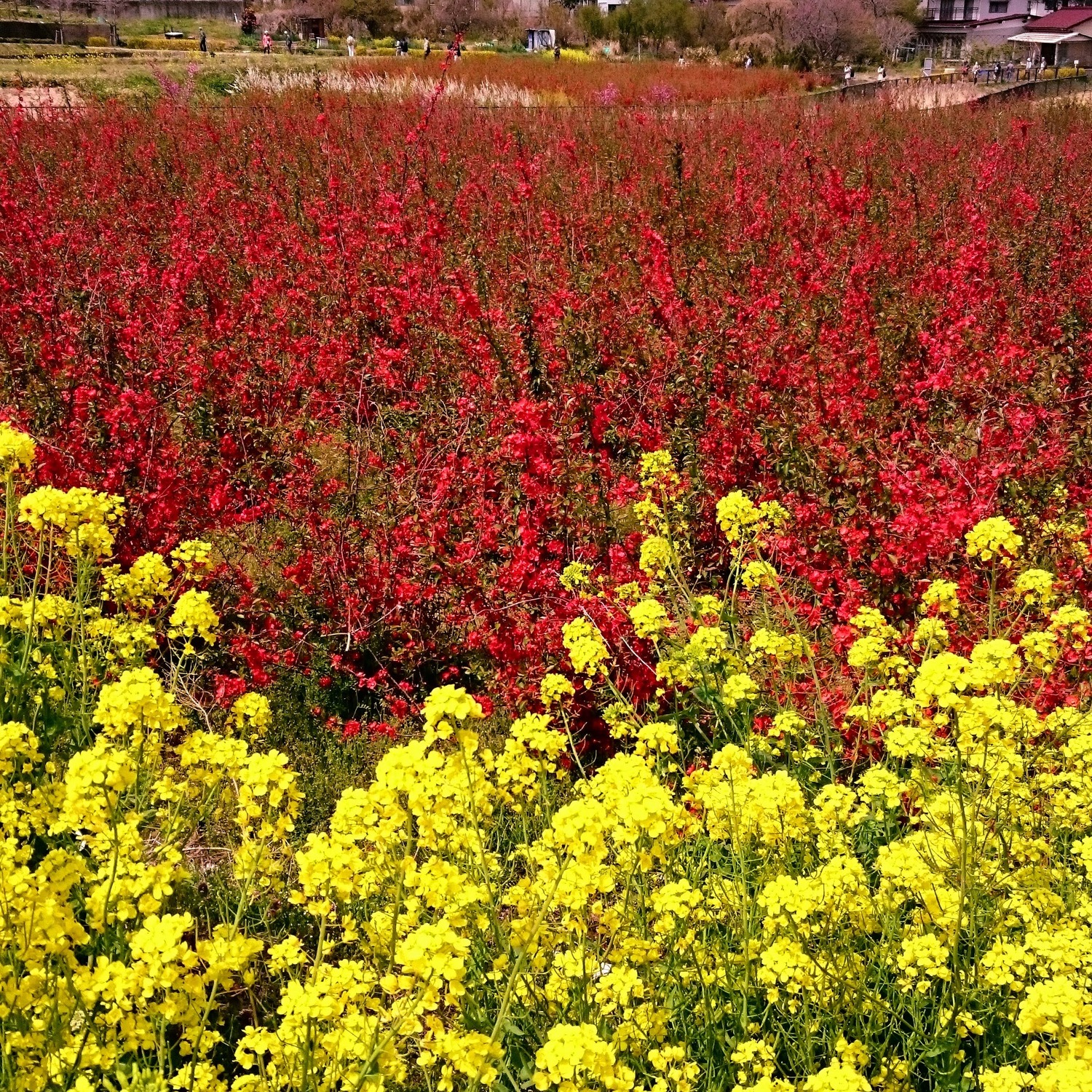 而油菜花盛開的時間會與櫻花的花期重疊約一星期左右,所以在日本有些地方能夠同時欣賞整片的盛開的櫻花以及盛放的油菜花,綿延的紅黃花毯交織而成日本春天特有的粉嫩景色;如果想欣賞到這特別的景色,記得先查好時間地點在前往,以免撲空喔!