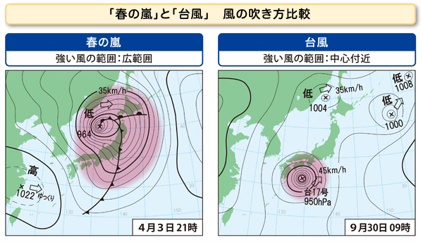 事實上,三月到五月正是「爆彈低氣壓」活躍的時期。春季由於海水溫度較高,低壓亦急速增強,等移動到日本時,有時風速甚至不遜於中度颱風,隨之而來的暴風與巨浪相當危險,影響範圍卻往往比颱風來得廣上許多。因此,「爆彈低氣壓」在日本也被稱為「春之風暴」。