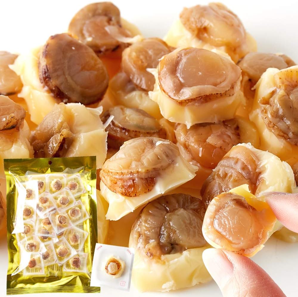 使用了北海道產的新鮮干貝加上香濃起司很好地交織在一起,是一款不添加防腐劑及色素的美味下酒菜。因爲是獨立包裝型,不僅攜帶方便也十分衛生,並且可以在常溫下進行保存。