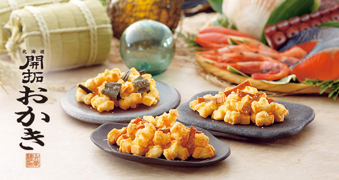若來到北海道想嚐鮮一下,這款米菓也可以給你滿滿的海味。北菓樓想要復刻從開拓時代開始就被人們熟知的味道因此誕生了這幾款風味米菓。有函館魷魚、甜蝦、標津秋鮭、枝幸帆立貝、昆布口味等等。原料使用糯米和鹽,用老式的杵研磨後泡在水中24小時,再乾燥3天。秉持食材品質和製作方法,再現開拓時代那令人懷念的香菇的氣味。