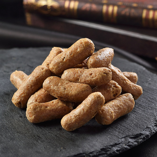 採用獨有的浸漬製法,用生焦糖製成浸漬的醬汁,再將麵團搓揉成的一顆顆花林糖丟進醬汁裡,充分吸收滿滿焦香味。是一款香甜酥脆的口感讓人不禁一口接著一口送進嘴裡的傳統日式點心。