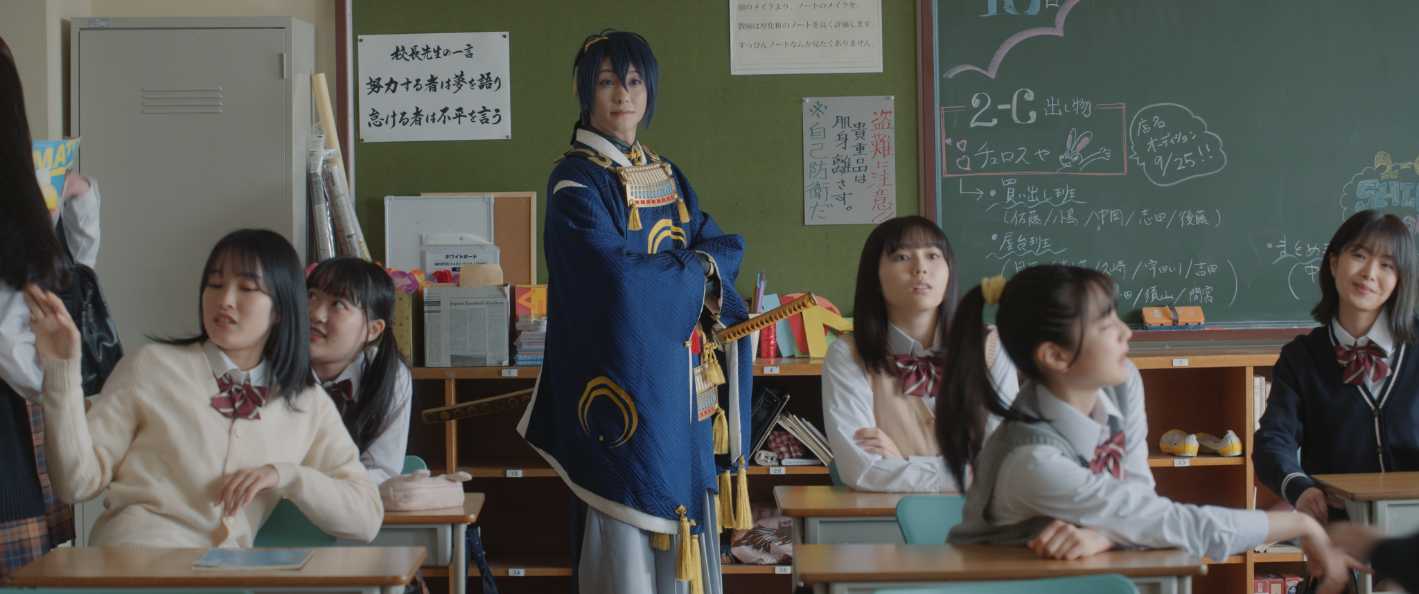 作為在電影中戲分最多的刀劍男士,鈴木擴樹所飾演的「爺爺」三日月宗近可說是來到現代日本後,體驗最多「新玩意」的角色。不只進入女子高校,跟著現代的臨時主人琴音(秋田汐梨 飾)一起上學、泡咖啡店大口品嚐「抹茶拿鐵瑪奇朵」,高調打扮不僅走到哪都被人們行注目禮,甚至還原地成為拍照打卡吉祥物,不斷被人們要求一起自拍。