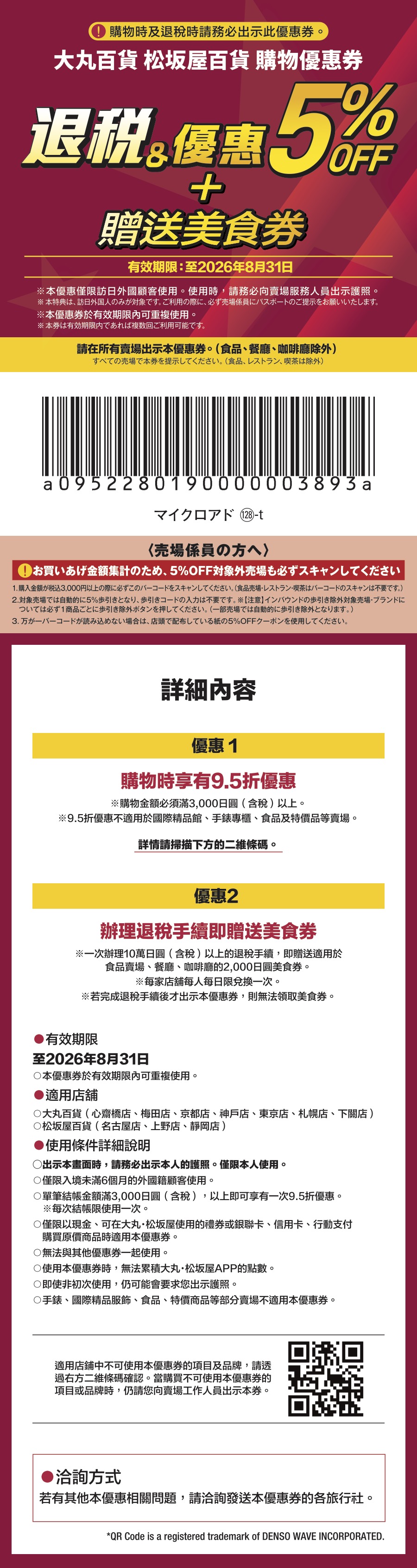 2025年大丸松阪屋 優惠券 退稅再95折,還送美食券