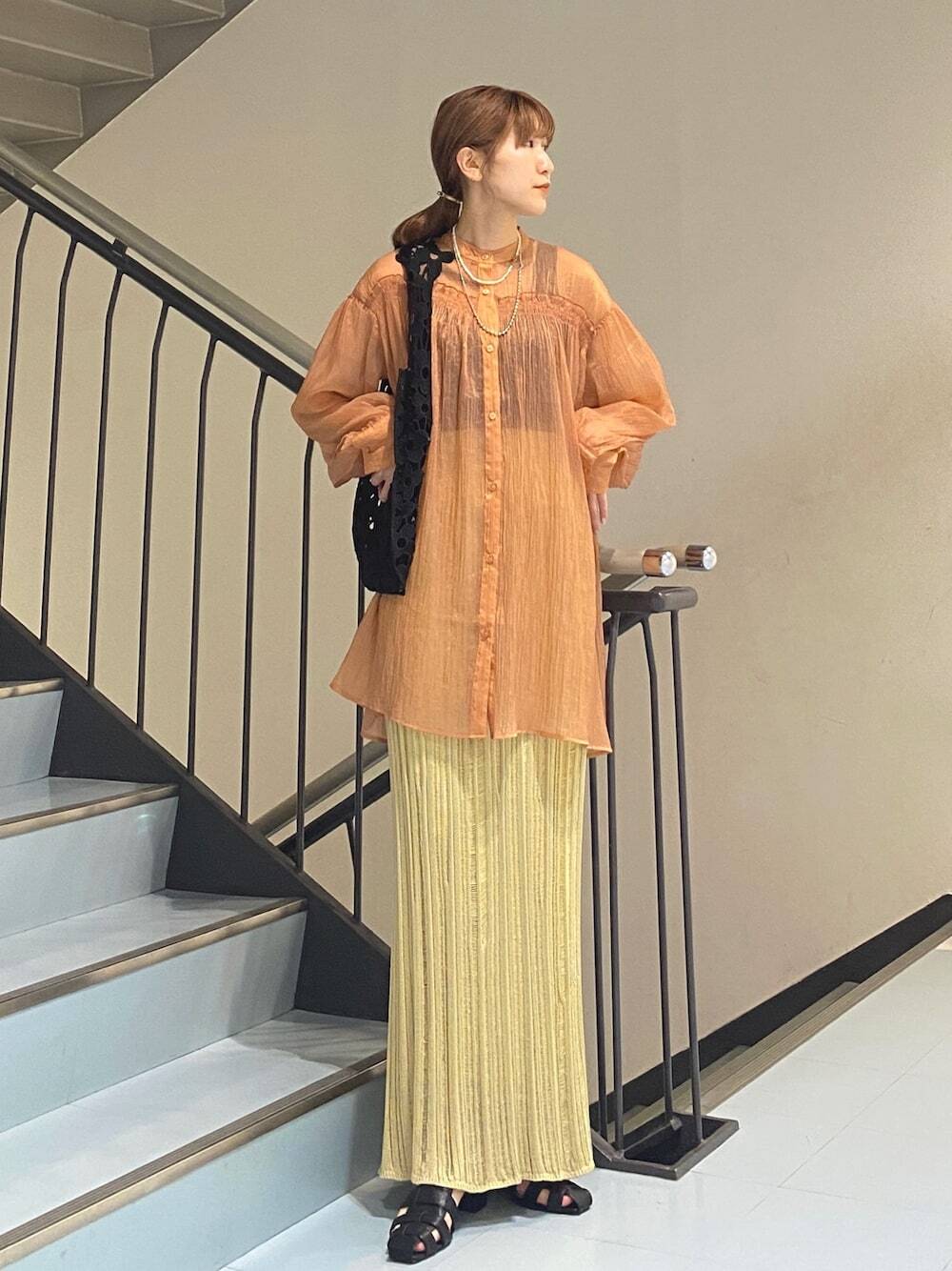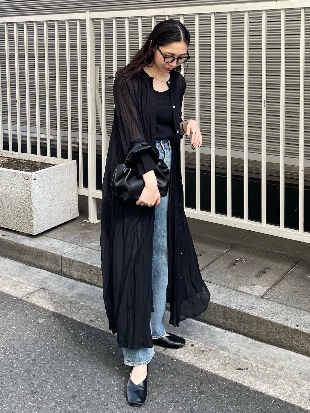 中長版透膚襯衫,向來是日本女生穿搭裡必備,長度剛好落在臀部能修飾臀部線條之外,運用透膚元素的襯衫,能降低單品原有中性感,下半身推薦混搭長裙或花紋長褲,製造衣著聚焦度還能添加優雅的日系氣質。