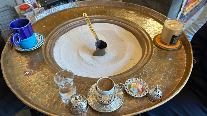 土耳其咖啡在2013年被列為聯合國教科文組織非物質文化遺產,它的特色在於用傳統的「熱砂」方式來加熱咖啡,先將咖啡豆磨成細粉後,再加入水、糖放在叫做「cezve」的土耳其銅壺中後,再放入熱砂中加熱。接著咖啡就會一湧而上,彷彿魔法一樣。這樣的過程讓人百看不厭,據說這樣可以讓咖啡有更獨特的香氣。