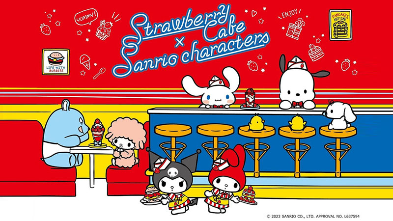 日本知名選品店JOURNAL STANDARD旗下的三個餐飲品牌:J.S. PANCAKE CAFE、J.S. BURGERS CAFE、J.S. FOODIES,與Sanrio characters合作,以虛構的美式餐廳Strawberry Cafe為主題,推出符合三麗鷗人氣角色:美樂蒂、酷洛米、大耳狗喜拿、帕恰狗的各式草莓菜單。限期2個月的特別菜單,喜歡三麗鷗的朋友千一定要把握時間前往朝聖!