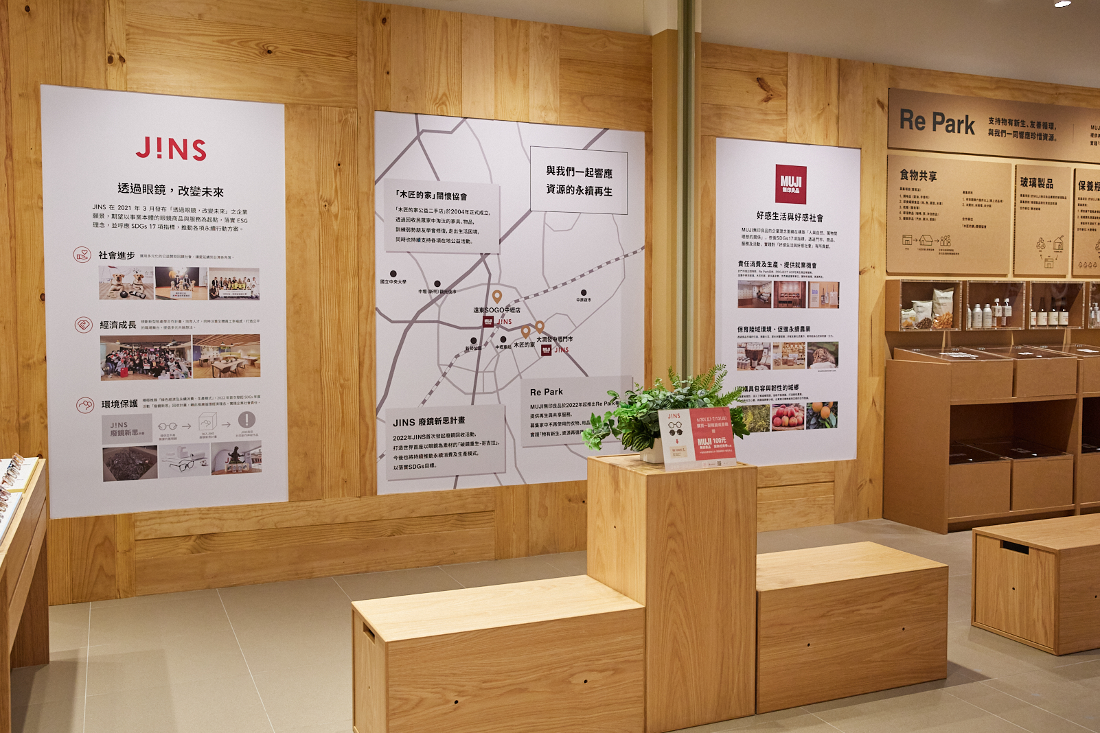 開幕日,JINS台灣總經理邱明琪與MUJI無印良品副總經理岩崎雄史皆出席剪綵活動,為品牌合作立下新里程碑。本次新店型擁有台灣首見,由JINS 與MUJI無印良品共同打造的休息區,以「再生和永續」為主題,邀請顧客理解雙品牌在SDGs上的努力,並設有販賣機、咖啡機,不論是配鏡等待時間,還是逛累想休息,都可以到裡面放鬆身心,全新型態的零售模式,期望帶給顧客與以往截然不同的消費體驗。