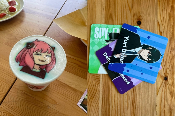 飲品的部分有:靠牛奶多少減輕咖啡對胃傷害的「洛伊德的咖啡歐蕾」、以約兒外觀設計的「約兒的洛神花茶」、參考安妮亞喜歡喝的可可「安妮亞的星光可可亞」、約兒的弟弟尤利帶的伴手禮「尤利的紅酒風葡萄汁」,造型上特別使用酒瓶造型瓶子,還原紅酒造型,還有以達米安外觀設計的「達米安的黑糖珍珠奶茶」,及安妮亞的造型「打印飲料」,每款飲料都好拍又好喝。來店消費任一飲品,還會贈送《SPY × FAMILY間諜家家酒》角色杯墊乙張(共12款隨機發送、恕不挑款),趕快來蒐藏吧!