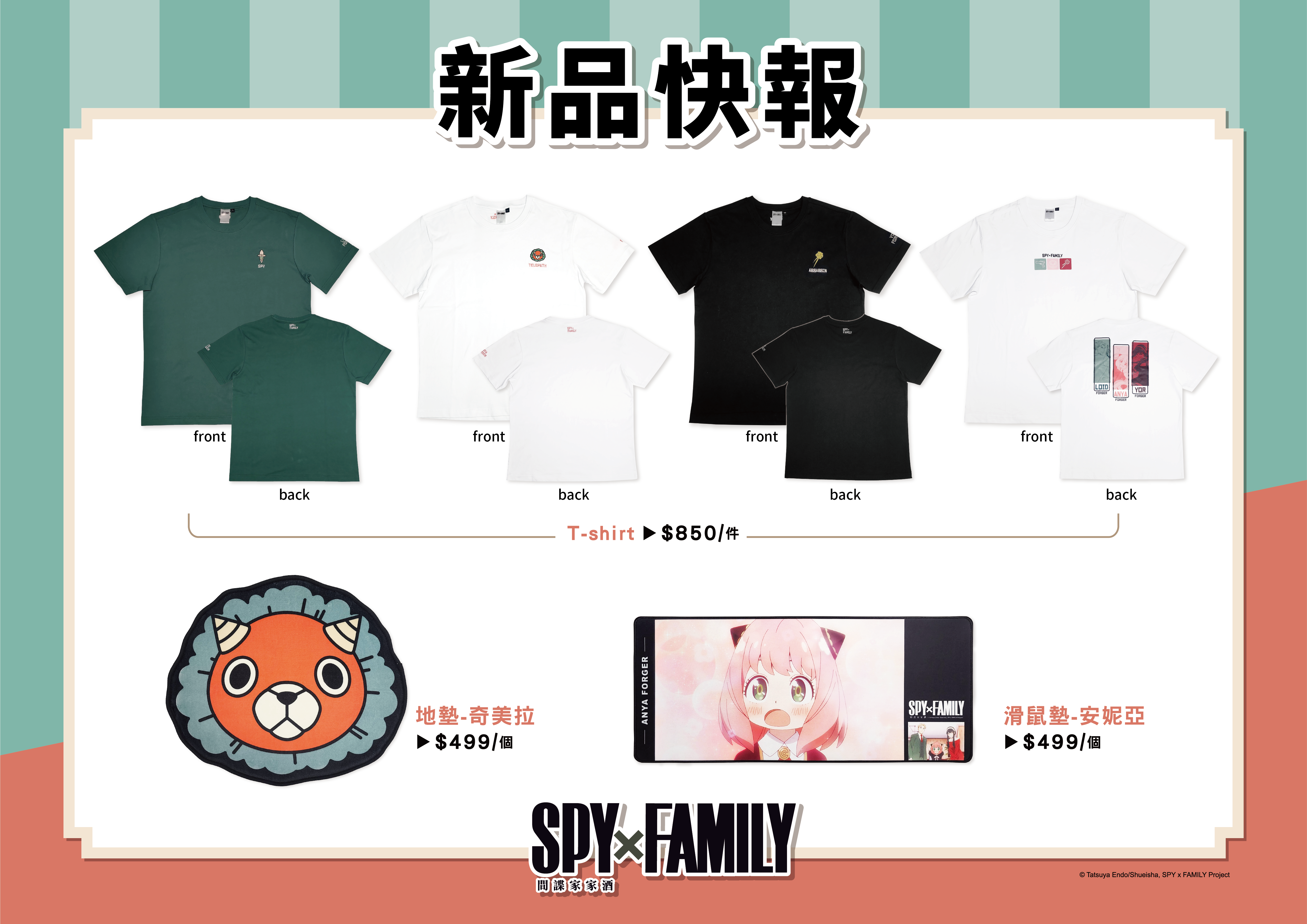 除了餐點以外,現場也開放預購、購買全新系列《SPY × FAMILY間諜家家酒》正版周邊商品。由「FANFANS粉粉」設計一系列可愛又實用的周邊,像是短袖T-Shirt、帽子等主題穿搭,讓粉絲們都能夠將《SPY × FAMILY間諜家家酒》帶入生活日常。