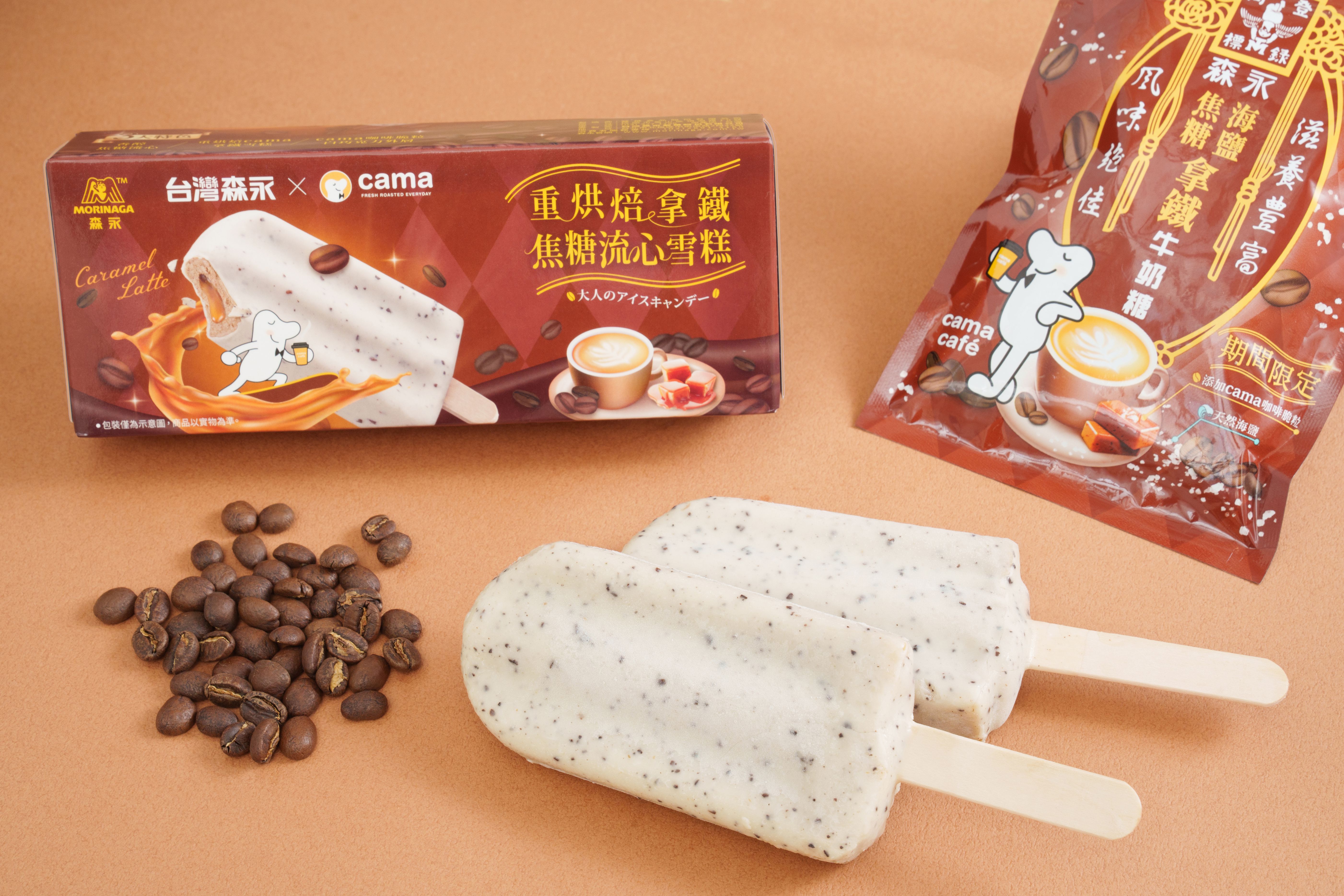 如果你是咖啡迷,千萬別錯過這款精品級雪糕!森永首次與知名咖啡品牌cama café展開聯名,結合經典與創新限量推出重烘焙拿鐵口味的香濃雪糕。吃一口雪糕就能擁有喝到咖啡的滿足感,口腔瞬間充斥咖啡香,給你超精緻口感享受。外層採用帶有咖啡碎粒的白巧克力脆皮,包覆著濃烈的重烘焙拿鐵雪糕,微苦的咖啡脆粒讓雪糕更具成熟風味,內藏驚喜的甜蜜焦糖流心,每一口都展現出層次豐富的美味。