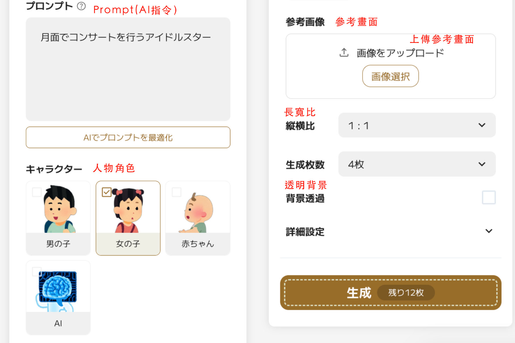 ➋ 参考画像:如果有參考的圖片,可以在此上傳給機器參考