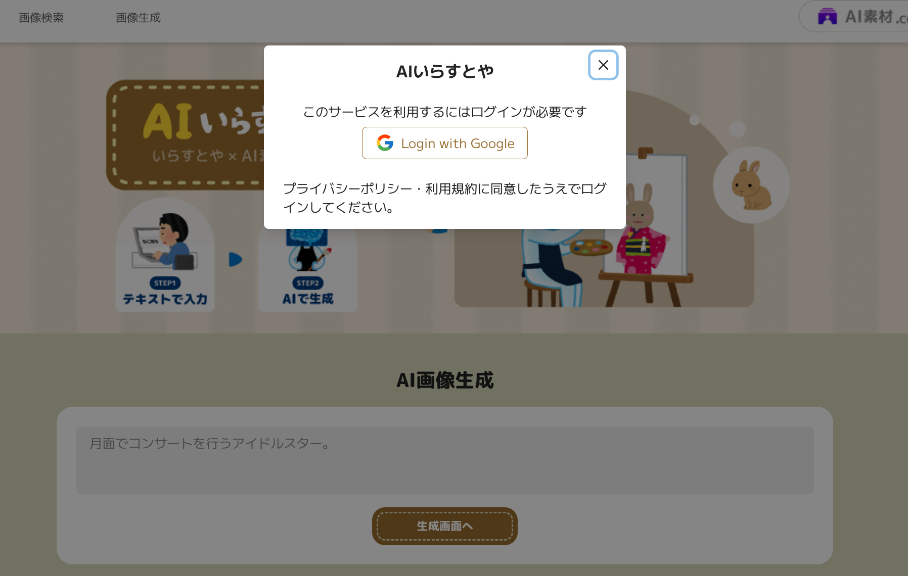 有別於いらすとや網站不用登入即可使用,在AI いらすとや機器人生成圖片前,需要先登入會員。目前僅支援用Google帳號登入。