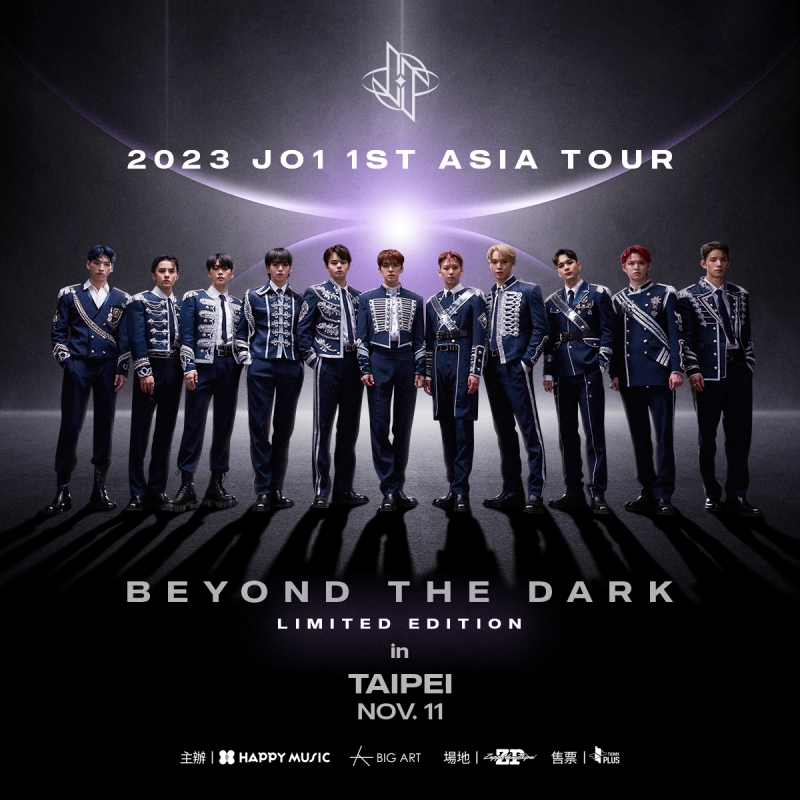 JO1首次亞洲巡迴演唱會台北站「 2023 JO1 1ST ASIA TOUR 'BEYOND THE DARK' LIMITED EDITION IN TAIPEI」,將在 11 月 11 日(六)晚間 7 點於 Zepp New Taipei 登場,演唱會門票預計 9 月24 日(日)中午12點於 Ticket Plus 遠大售票系統正式開賣,採實名制銷售。售票與演出詳情請鎖定主辦單位大鴻藝術 BIG ART 官方臉書以及 IG 專頁。