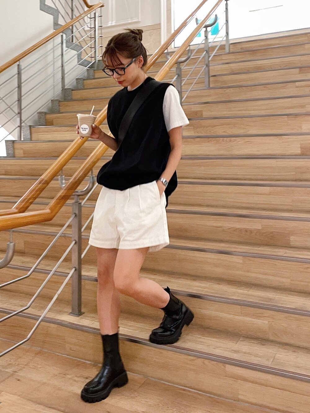 入門針織背心搭配方式,不妨以 TEE + 短褲為主,百搭實穿的短袖 TEE 與針織背心做疊搭,便能輕鬆增添造型層次,加入短褲讓整體同時擁有時尚和造型溫度,隨性踏上襪靴、樂福鞋就很好看加分。