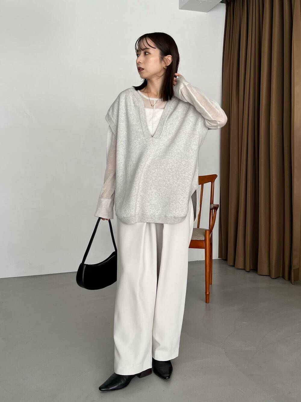 正式進入秋季後,天氣轉涼開始越來越明顯,此時選搭針織背心、長袖上衣與直筒褲,輕鬆轉換出符合季節的外出 Look ,如果擔心素色單品會讓穿搭略顯無聊,推薦將透膚上衣和針織背心混合,再加上同色系的造型巧思,傳達簡約輕休閒日感氣息。