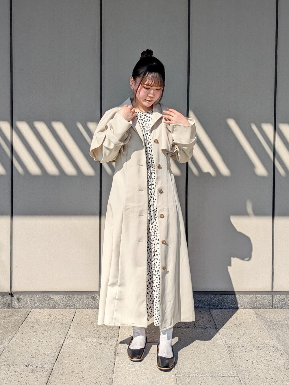 不分季節皆可穿著的碎花洋裝,從春夏一路穿到秋天使單品活用性更高,結合同樣是長版設計的風衣外套加乘,為造型突顯優雅大方的氛圍,融入方頭平底鞋提升輕復古 Look ,換上尖頭高跟鞋便能帶來日系優雅氣質。