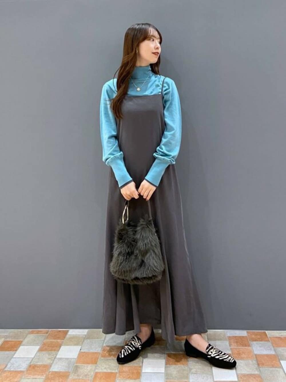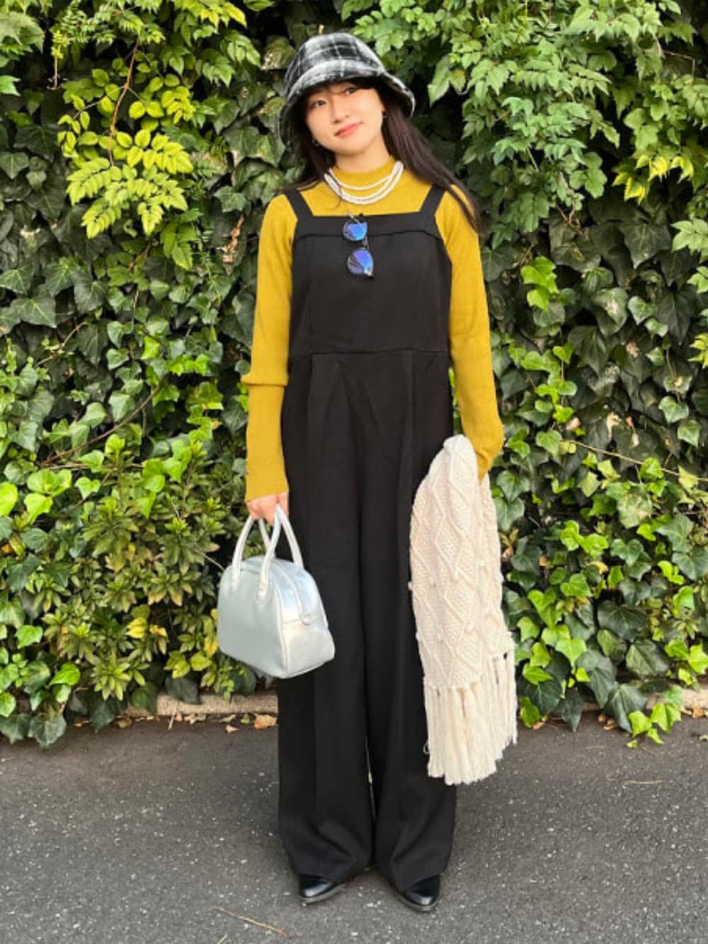 高階版針織上衣色彩搭配法則,選搭撞色系使造型展現令人為之一亮的視覺感受,例如將亮色系的黃與暗色黑混和,便能衝擊出與眾不同的造型火花,另外以藍色針織上衣和灰色背心裙的組合,同時點亮成熟的日系大人感。