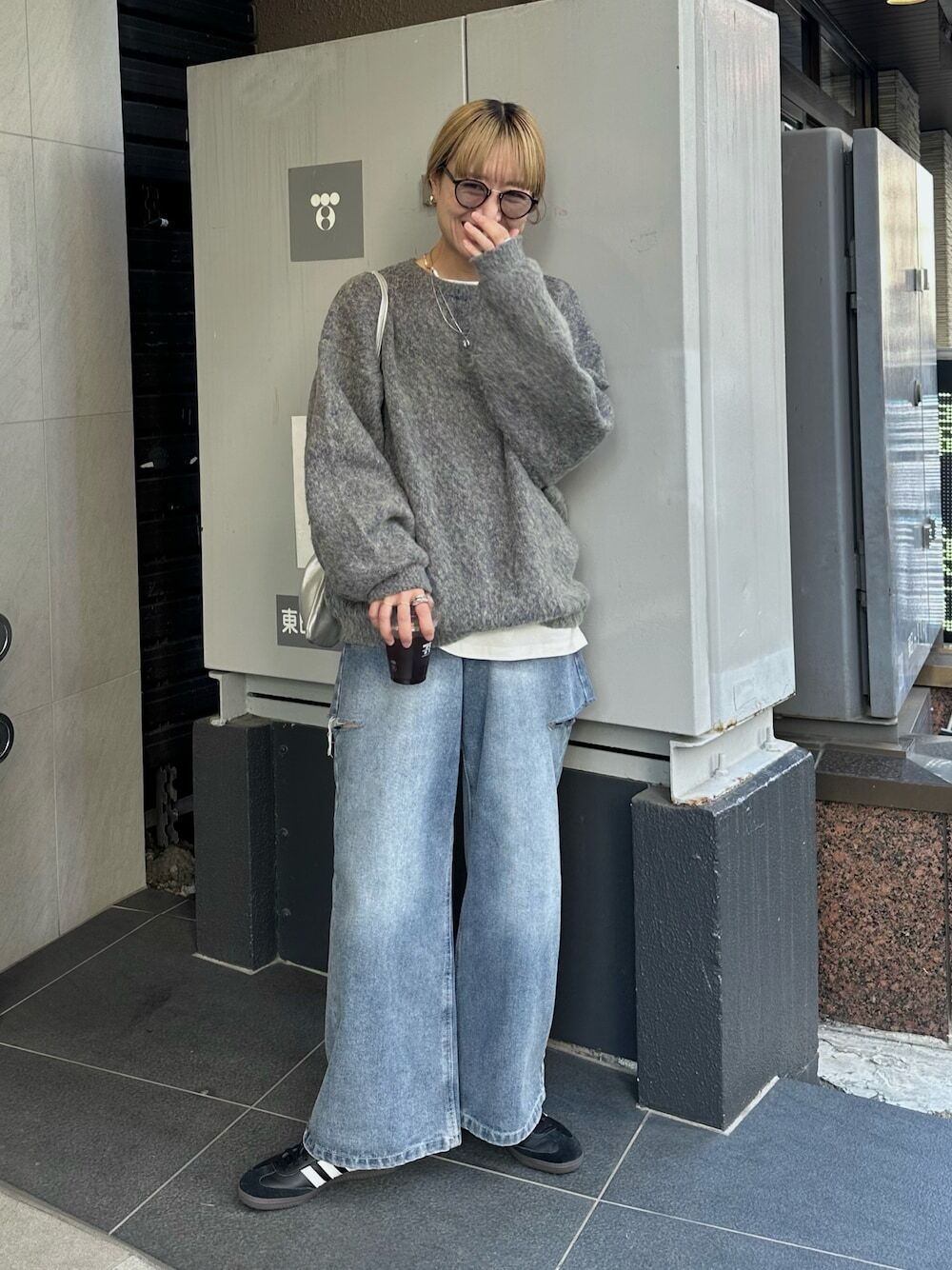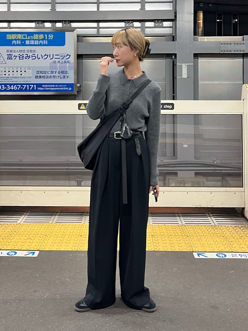 低調灰色系單品,向來給人沉穩內斂的印象,不僅適合在秋季穿著,也非常推薦給喜愛穿著休閒 Look 的大家,以寬感灰色針織上衣 + 淺藍牛仔褲,呈現簡單休閒的日常風格,換上翻領針織上衣與黑色寬褲,打造個性兼具的中性造型。