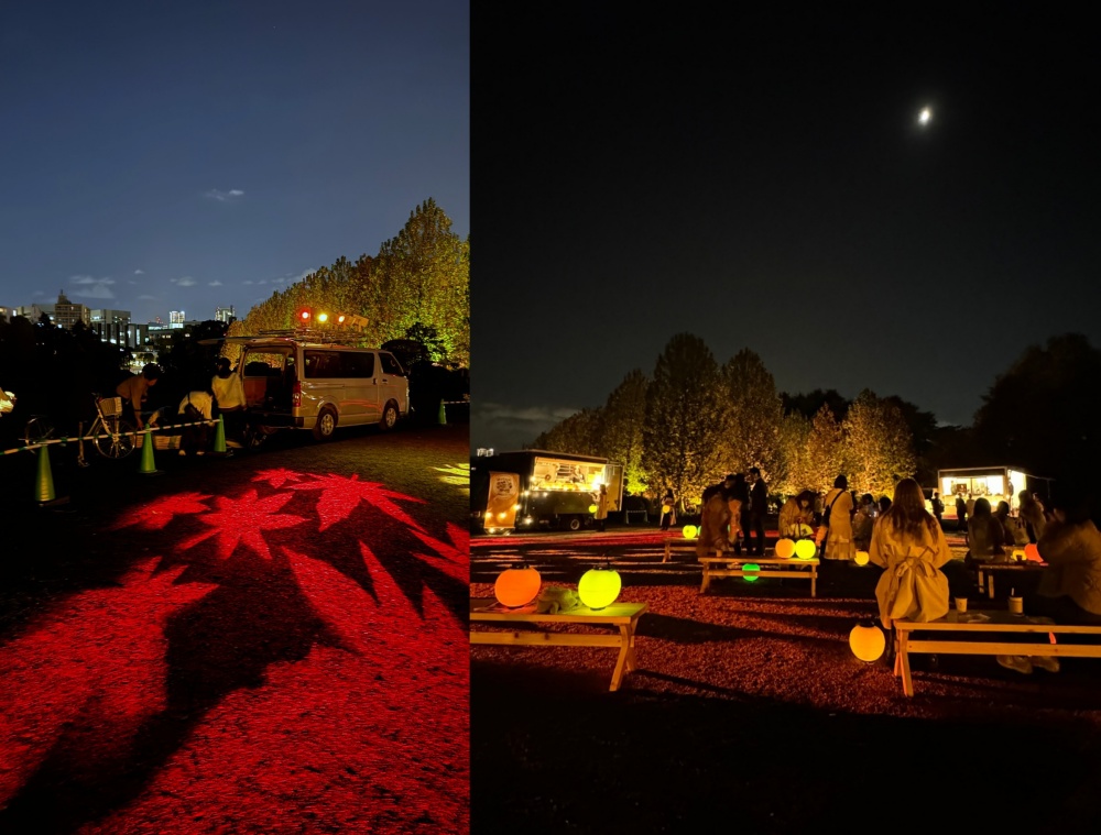 可以自由選擇的花色分別有:「懸鈴木、楓葉、銀杏」三種新宿御苑標誌的秋天植物,每種花色有四個顏色,共12種的組合,讓遊客也自然融入光雕藝術的一部分,氛圍感直接拉滿。