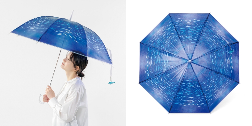 FELISSIMO的各種別出心裁的傘屢屢在社群蔚為話題,這次要介紹的是乍看低調的藍傘,但仔細一看,會發現它完整重現了水族館中沙丁魚群聚遊行的身影。這可是跟由名古屋水族館的飼育員監修,讓名古屋水族館有名的「沙丁魚的龍捲風」在傘上重現的傑作呢!