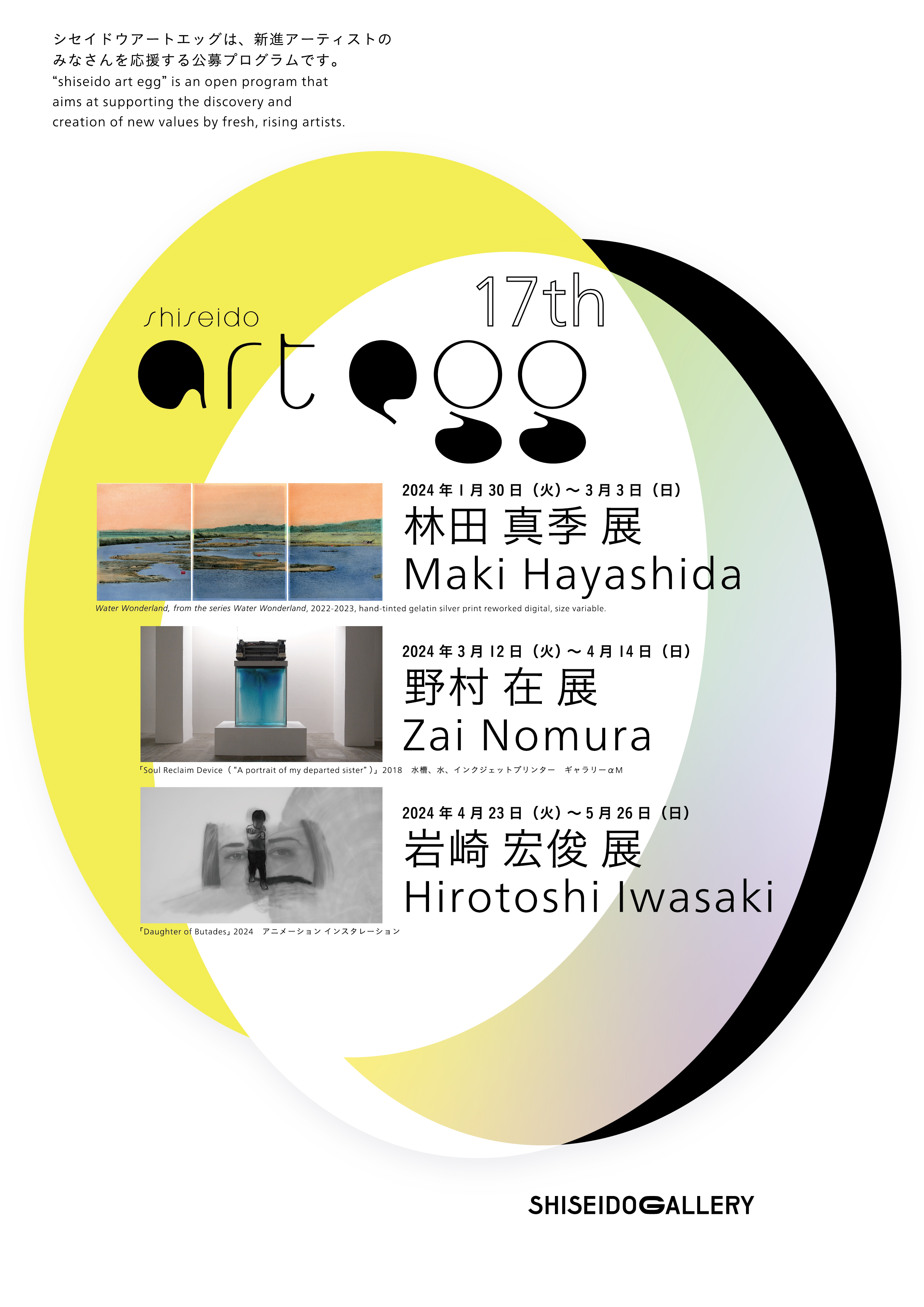 除了各式展覽,「資生堂藝廊」還成立「樁會」,邀集藝術界名家展出作品外,也積極培育藝術新秀,自2006年起開始舉辦「shiseido art egg」,招募新進藝術家前來參賽,從中選出優秀作家策展,提供更多被看見的機會。「資生堂藝廊」將在2024年1月30日至5月26日,舉行第17屆「shiseido art egg」由3位新銳藝術家輪番上陣展出作品。詳細展覽資訊可於官網洽詢。